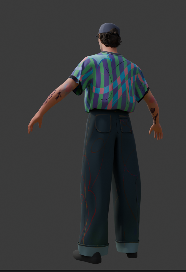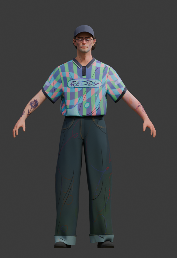 To translate the character from 2D to 3D, I modeled the base shape in Forger on the Ipad, exported the Model to Procreate for texturing and compiled all the files in Blender. A big struggle I had was creating the hair for the character. Weather sculpting each hair strand by hand or using hair simulation did not give me the desired look.